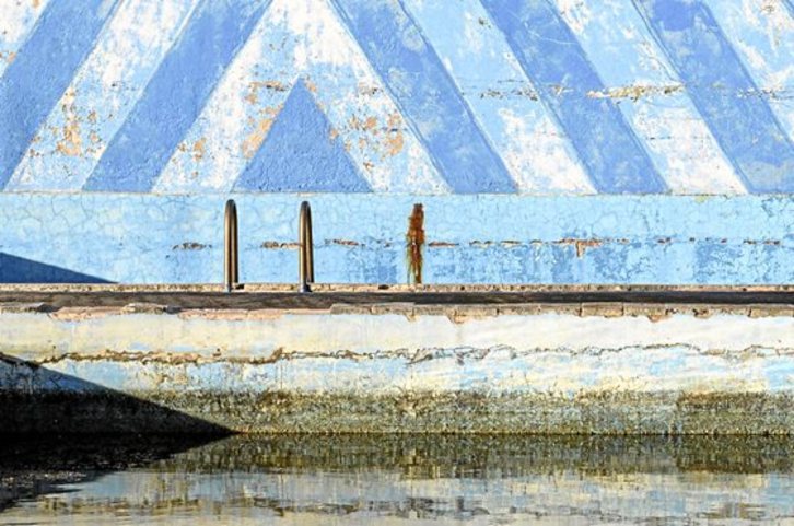 La Galería de Arte Juan Manuel Lumbreras también retoma la normalidad de su programa expositivo de la mano de la obra fotográfica de Cano Erhardt (Bilbo, 1955). “Piscinas del olvido” se inauguró el pasado 8 de julio y podrá visitarse hasta el próximo 11 de setiembre en el espacio bilbaino. Además, también lo hace como participante del Festival OFF del Certamen PHotoEspaña 2020 que lleva programándose durante los meses de verano desde que iniciara su andadura en el año 1998. El proyecto tiene por escenario un barrio de La Habana. Sin embargo, bien podría ser parte de cualquier territorio olvidado de la costa mediterránea o de algún complejo hotelero que con la crisis económica ha quedado relegado a una ruina prematura. Esa decadencia es la que marca el carácter casi nostálgico de las piezas. Piscinas que se integran entre el óxido y el moho que las cubre, como parte de una memoria reciente que parece recordarnos un nivel de vida que nunca pudo alcanzarse o que fue inviable mantener. Una metáfora de un sistema económico de usar y tirar en el que la calidad de vida se confunde con la ostentosidad y la necesidad de subrayar una posición social. Las piezas abrazan una nostalgia en tonos azules y grises que entre chorretones y goteras nos rodean de una sensación casi pictórica y plagada de texturas y composiciones tan interesantes como tristes.