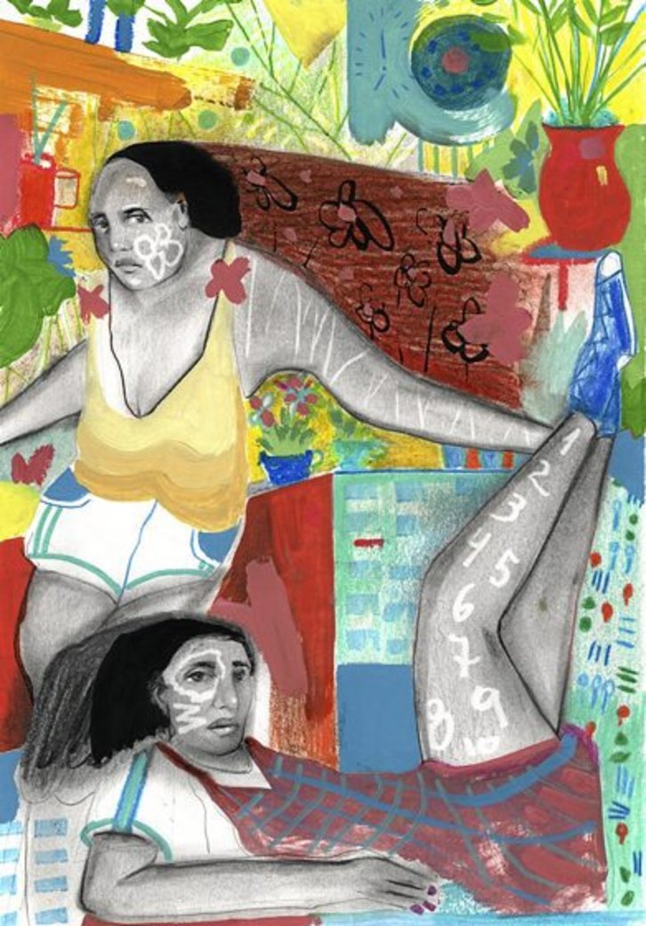 “Calma chicha” es el estado de calma de la mar que aporta una extraña quietud por la ausencia de viento. Los barcos no pueden navegar y están condenados a esperar en medio de una sensación de desasosiego por lo que vendrá. Esta expresión es la que la pintora Amalia Julieta Gómez (Argentina, 1988) ha elegido para bautizar el proyecto inaugurado en la bilbaína galería Juan Manuel Lumbreras el pasado 8 de julio. Hasta el próximo 11 de septiembre podremos acercarnos al trabajo de la artista afincada en Bilbo. Un alegato a favor de un mundo basado en un imaginario propio, con personajes bien definidos y que se acercan en muchas ocasiones a resoluciones habituales en la ilustración y a juegos compositivos propios del diseño. La disposición en sala nos propone la visita a través de varios grupos enmarcados y colocados de forma conjunta, lo que nos hace entenderlos a veces como colecciones o familias. De esta manera completa su segunda ocasión en la galería tras “Tarambanas”, allá por 2017, dentro del programa “Joven llama a joven”.