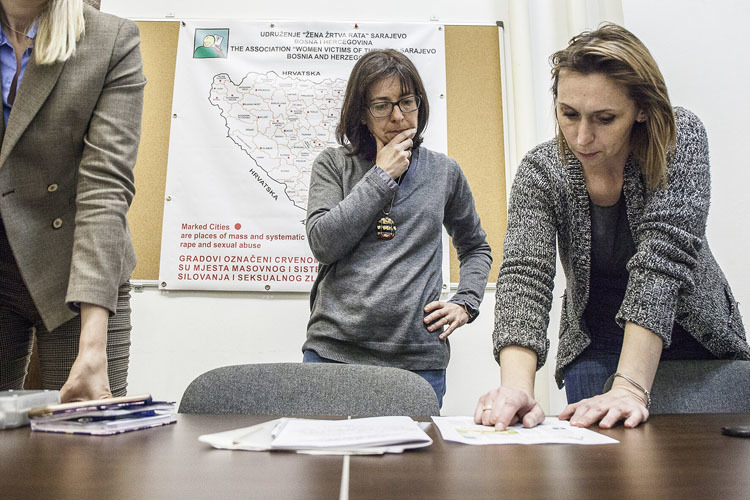 Silencio y estigma. Si bien han pasado 25 años desde los acuerdos de Dayton, el silencio y el estigma siguen siendo parte de la vida de estas mujeres. «Te diría que lo más difícil de todo el proyecto ha sido conseguir que ellas y ellos nos aceptaran y se creara el clima de confianza necesario para que nos contaran sus historias. Algunas de las mujeres supervivientes relataron desde un primer momento lo que les había sucedido para poder llegar a los tribunales, pero, evidentemente, cada vez que lo cuentan les supone una regresión, volver al trauma. Llegó un momento en que se saturaron, que vieron que su vida no mejoraba, que nadie las ayudaba, que no se hacía justicia y están muy resentidas, porque el hecho de explicar sus historias no les ha mejorado su vida. Tuvimos que construir ese clima de confianza, explicar muy bien el proyecto. Para mí la comunicación con ellas ha sido algo básico. No fue el proceso habitual de pedir y hacer una entrevista y luego te vas. De hecho, ellas nos decían, ‘vosotros volveréis a vuestro país y nosotras nos quedamos aquí con nuestras historias y nuestra vida miserable’. Esto nos hizo reflexionar mucho desde el primer viaje y, por ello, decidimos incorporarlas al proyecto y que en todo momento estuvieran al corriente de lo que estábamos haciendo, de lo que queríamos hacer, de las fotografías que habíamos hecho, de los montajes. No es fácil porque no hablamos el mismo idioma, todo tenía que ser a través de intérpretes. Dos de ellas no tienen acceso a internet ni a redes sociales. Ha habido viajes que hemos hecho solo por verlas, para pasar un día con ellas, para enseñarles el material, sin rodar nada ni entrevistarlas. Han agradecido un trabajo lento pero bien hecho y ellas se han sentido partícipes. En alguna ocasión, cuando llegamos nos dijeron que no se sentían bien, que no tenían ganas de hablar y esto lo respetamos siempre. Llegó un momento en que vieron que sí les compensaba, que alguien las escuchaba y que podían ampliar su voz más allá de Bosnia». Su gran reto es llevar el documental a Bosnia, emitirlo en la televisión nacional y hacer algún tipo de acto público. Habían previsto hacerlo en octubre de 2020, pero a causa del covid-19 se aplazó y ahora están a la espera de que mejore la situación para poder llevarlo a cabo. «Queremos llevarlo también a Kosovo, donde se produjeron muchas violaciones».