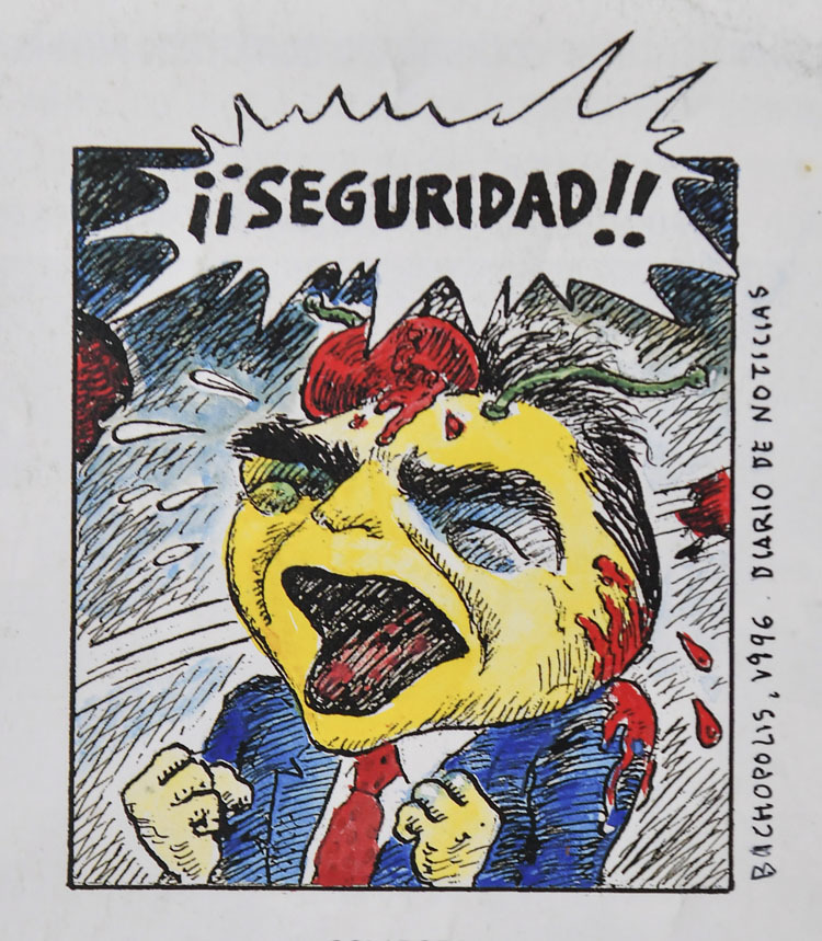 Caricatura del expresidente navarro Miguel Sanz muy enfadado.