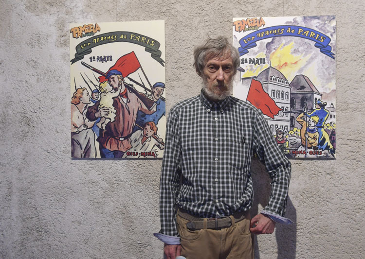 Contemplando su flaca y despeinada figura en la exposición que protagoniza en el espacio Condestable de su ciudad, el tiempo parece detenido ante Pedro Osés Navaz (Iruñea, 1942). Se inaugura la XII edición del Salón del Cómic de Nafarroa (hasta el 3 de octubre) en la que participa por partida doble. En el noble espacio de la calle Mayor se muestra la actualización de su cómic de 1984 “Los apaches de París”, celebrando el 150º aniversario de la revolución de la Comuna. Y el espacio Civican muestra una selección del cómic inédito sobre el clásico “La historia interminable” del germano Michael Ende, del que también se exhiben filmaciones hasta el día 30 en la muestra colectiva “Escenarios fantásticos” de la Biblioteca de Navarra.
