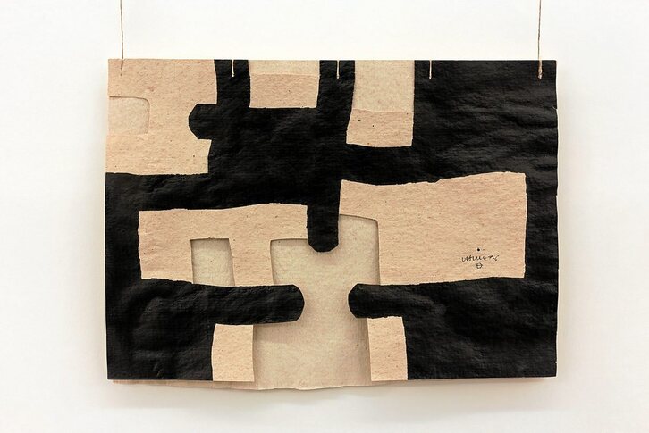Eduardo Chillida (Donostia, 1924-2002) es el protagonista de la exposición que tiene lugar en la galería Carreras Múgica de Bilbo y que lleva como título “Gravitaciones”. Hasta el 7 de diciembre podremos acercanos a esta colección de 9 piezas realizadas entre 1985 y 1995, en las que el escultor donostiarra experimenta con el papel y la creación de espacios a través de la superposición. Fragmentos que se entrecruzan y elevan y que la tinta ayuda a destacar y organizar. Creaciones casi escultóricas o de bajo relieve que habitan la bidimensionalidad desde un anhelo espacial.