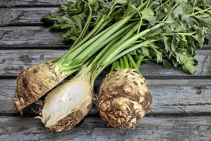 Voy a empezar por deciros que se trata de una verdura que está brutal, tiene unas posibilidades exageradamente ricas y no es nada difícil de trabajar. Esta verdura, hasta ahora gran desconocida para la mayoría de los mortales que consumen poca verdura, resulta una guarnición brillante para cualquier alimento graso. Podríamos conseguir una textura parecida a la de una patata, pero con una acidez y frescura que enganchan. Ya os lo he dicho, estamos ante un tubérculo feo pero majo y que mola. Además, se lleva bien con casi todos los alimentos y tipos de elaboración, inclusive postres. El celery, porque también se llama así, es uno de esos todoterrenos de la cocina con los que llegar lejos y siempre rico.