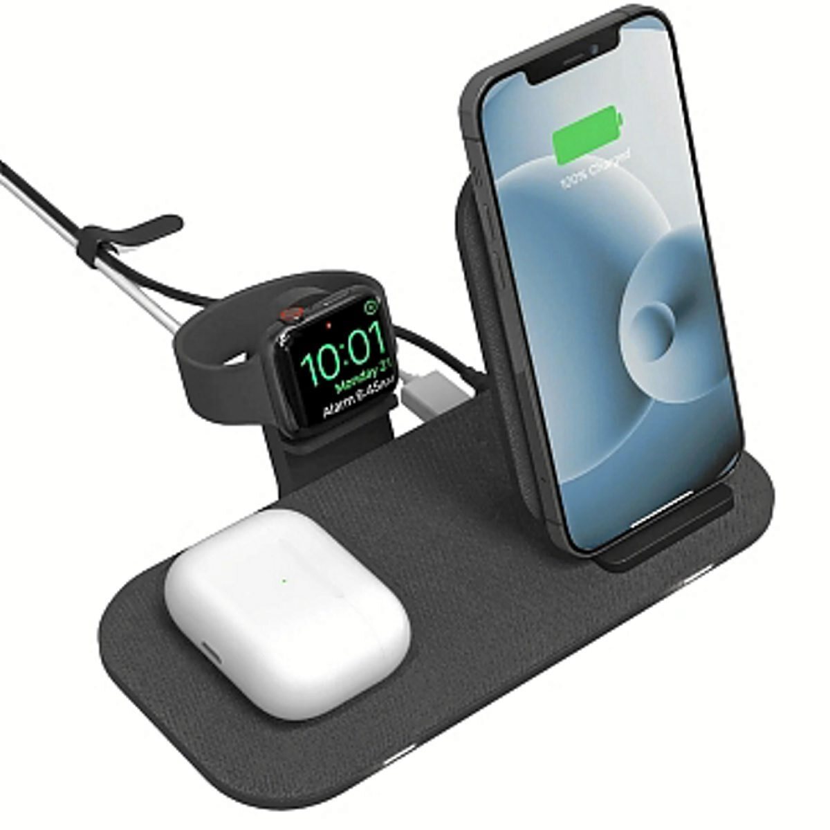 Este soporte de carga inalámbrica es la solución perfecta para quien cuenta con varios dispositivos compatibles con la tecnología Qi y necesita alimentarlos simultáneamente de manera segura y eficiente con hasta 15W con solo apoyarlos en la base incluso con la funda puesta.