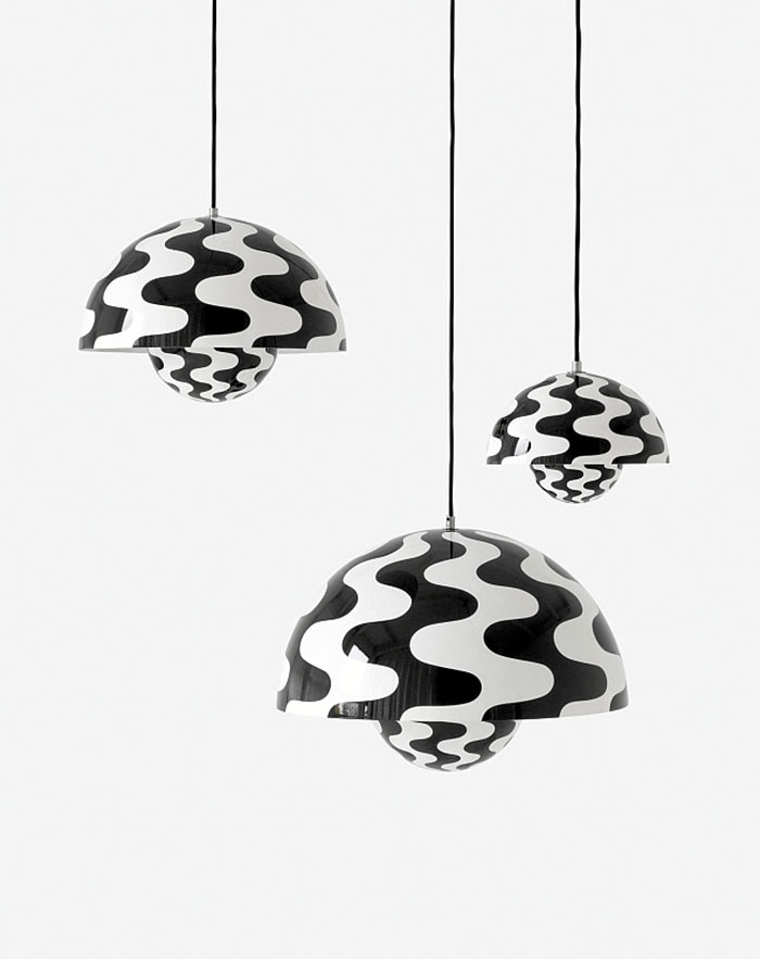 Las lámparas Flowerpot, de Verner Panton, fueron un auténtico bestseller en su momento, convirtiéndose en todo un símbolo del movimiento Flower Power de finales de los años sesenta. Reeditada por &Tradition, este clásico se ha convertido en una de las piezas más “hot” del momento. Disponible en una paleta de Pantones que va del rojo al azul cielo, pasando por una increible gama de pasteles y metalizados, se viste ahora en un llamativo estampado Op Art blanco y negro muy bien llevado. Ya se sabe, las flores quedan bien en cualquier sitio.