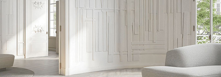 ¿Puede un simple papel de pared cambiar la atmósfera de una estancia? La respuesta es sí. La Creative Collection de Glamora explora cinco corrientes de inspiración: desde los paisajes del Grand Tour del siglo XVIII hasta el lenguaje del arte informal que rinde homenaje a la música; desde la arquitectura brutalista hasta la naturaleza puesta bajo la lupa de la mitología o de los jardines más frondosos del mundo. En la imagen, Alison, un juego de encastres entre paralelepípedos que nos recuerda a la maqueta de una estructura urbana vista desde arriba. El lenguaje gráfico invita a descifrar la composición reticular, mientras que la elección monocromática aporta una personalidad fuerte al conjunto. Este tema es una reinterpretación contemporánea de los patrones narrativos puros, rigurosos, tono sobre tono y las superficies matéricas del brutalismo, corriente arquitectónica que surgió en los años 50. Perfecto para domesticar la dureza del brutalismo y meterla en casa (97 €/m2). http://glamora.it/