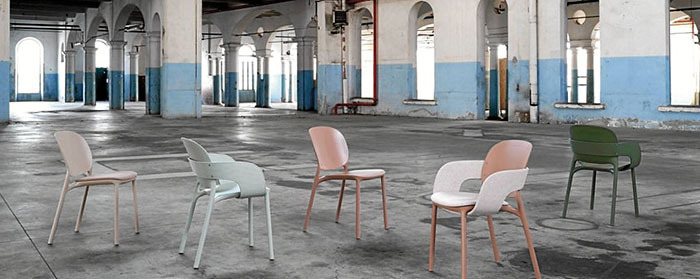 El estudio Meneghello Paolelli firma la silla Hug, de S·Cab (200 €), que puede ir de dentro a fuera y de fuera a dentro de la casa. Está fabricada en tecnopolímero, un material certificado regenerado post consumo industrial PCR. Silla y sillón alcanzan un nivel superior de calidad y ética, dando vida a una colección creativamente ecológica adecuada tanto para el uso en interiores como en exteriores. Nos encanta cómo, entre el asiento y el respaldo, de formas redondeadas y equilibradas, los diseñadores han introducido un elemento de banda, definido por un motivo de rayas en relieve que envuelve la estructura como un abrazo. Gran calidad y mucho compromiso ético.