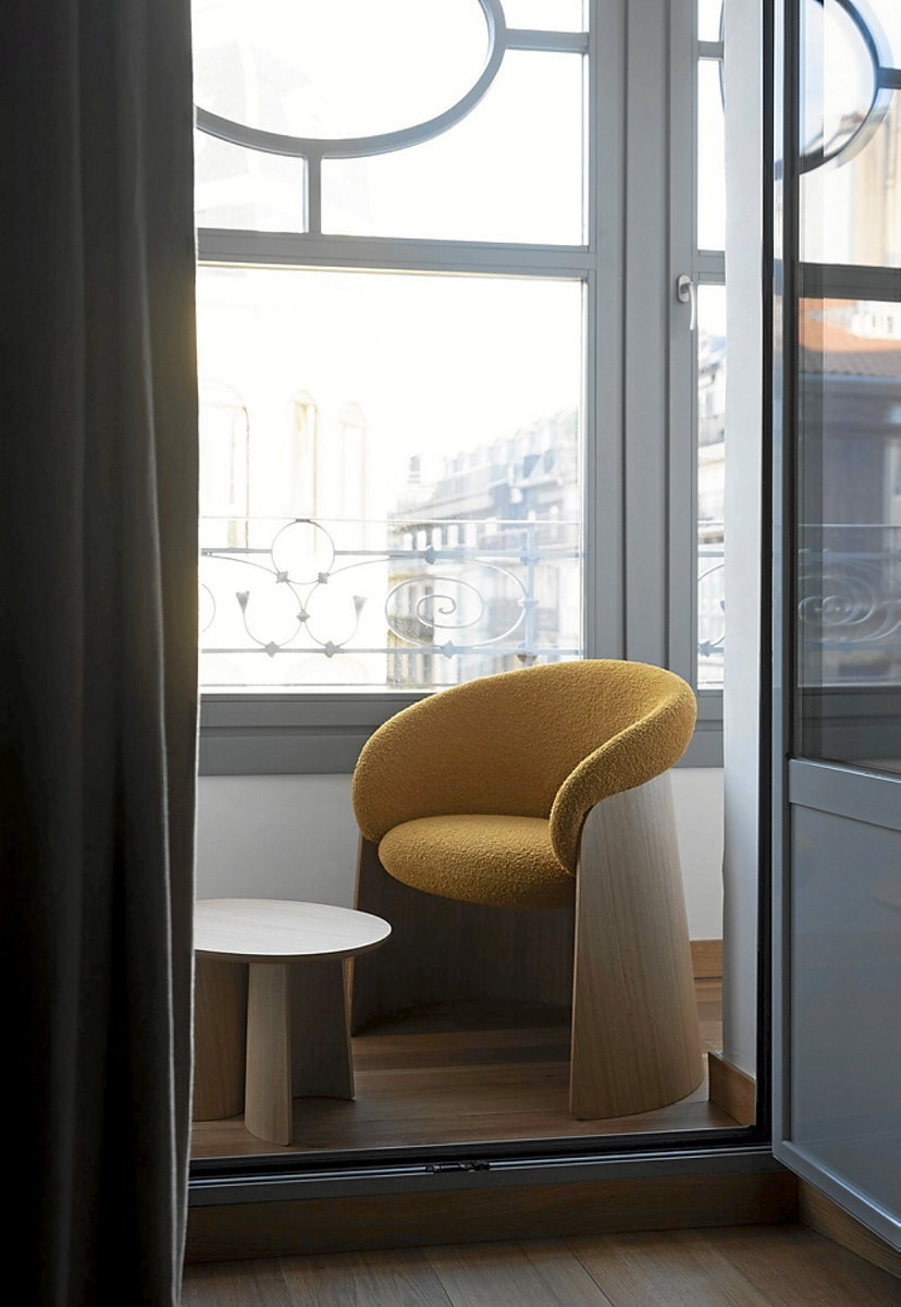 El diseñador Sebastian Herkner ha creado la colección de sillas Ginger para Ondarreta, combinando asientos suaves con una selección de bases con carácter. Las sillas Ginger cuentan con asientos redondeados y tapizados, que contrastan con las bases hechas de metal o madera que dan la sensación de tratar de contener los cojines a medida que se derraman por la parte superior. Entre las opciones de base hay dos que utilizan tubos de metal doblados, uno en un diseño de cuatro patas y el otro en un estilo de trineo, y una base de cuello de madera contrachapada que se envuelve alrededor de los asientos. «El último es un poco como un barco o una cáscara de nuez, algo que te abraza y te protege», dijo Herkner. La colección incluye sillas y sillones, junto con mesas de café o mesas auxiliares. https://www.ondarreta.com/en