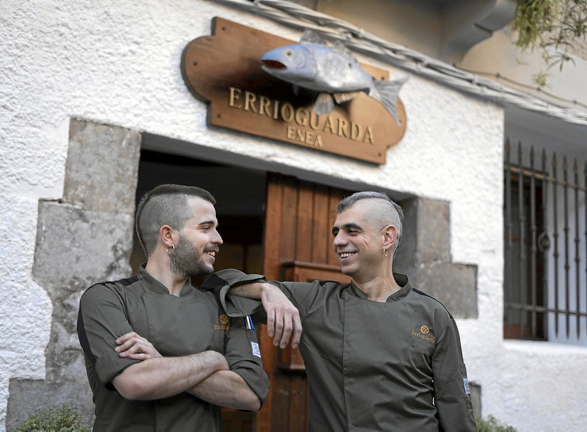 Y como en “Ocho apellidos vascos”, lo digo en castellano para que todos se enteren. En serio, bromas aparte, arranco contento y feliz este domingo, porque hace unos pocos días tuve la suerte y el placer de visitar una casa joven pero con mucha historia. Visité Errioguarda Enea, donde Beñat San Sebastián nos atendió con una profesionalidad, rigor, pasión y compromiso con su casa que cada vez cuesta más encontrar. No tenía duda alguna de que esto iba a ser así, pero lo que más gratamente me sorprendió fue ver que un proyecto joven, con fuerza, principios y euskaldun ha nacido cerca. Beñat confiesa que está él en el comedor porque su equipo no sabe euskara y cree que su proyecto, por historia, por cultura y por ubicación, merece este servicio. Es un compromiso casi oculto, del que no se hace alarde. Fui yo quien preguntó a Beñat si él era también cocinero y este me respondió que sí, pero que tenía que ser él quien atiende a la gente.