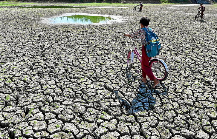 Tres niños indonesios con pinta de volver de la escuela -por eso de la mochila colgada a la espalda- pedalean sobre un terreno para arrozales completamente seco debido a la sequía que ha azotado la zona, tal y como muestra esta imagen tomada en Kuta Cot Glie. Ubicado en la provincia de Aceh, es el lugar más cercano al epicentro del gran terremoto del Océano Índico de 2004, el cual provocó un tsunami que devastó la mayor parte de la costa oeste de la región cuando estos chavales no habían nacido. Los extensos campos de arroz de distintos lugares de Indonesia componen algunos de los paisajes más hermosos de esta república que es, además, el mayor archipiélago del mundo gracias a sus más de 17.500 islas. Pero el arroz es algo más para un país de alrededor de 280 millones de habitantes. Es su principal cultivo y su principal alimento, un básico en la cocina indonesia y una de sus exportaciones más importantes, teniendo en cuenta que son el tercer mayor productor de arroz del planeta. Su cultivo ocupa alrededor de 10 millones de hectáreas en todo Indonesia. A mediados del pasado mes de diciembre, el Gobierno ordenó al Ejercito que colaborara con los agricultores en la siembra de arroz para recuperar el retraso provocado por una grave sequía que ha reducido la producción. Tampoco ayudó el fenómeno climático del Niño, pero esperan poder cosechar para marzo o abril. Que así sea.