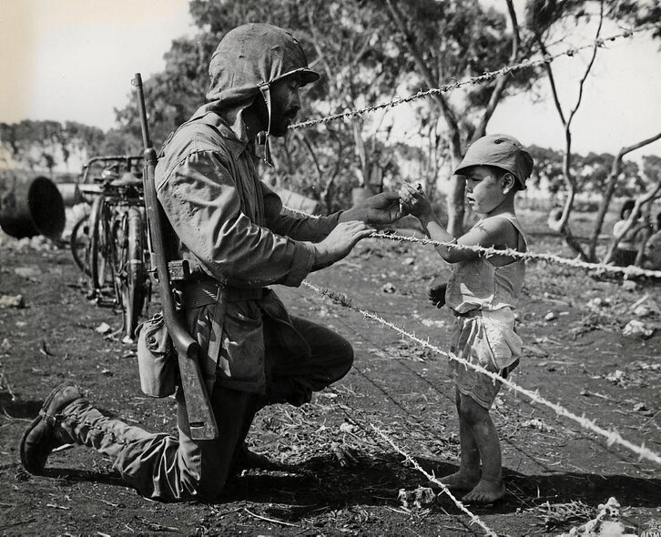 Bitartean, zein den, erretratua findu eta patroia aberasteaz gain, euskal komunitate horren errealitatea ispilatzen duen gerrako istorio humanoa? Euskal marineen artean identifikatutako hiru anaia bikoteena, agian; ala, marineak izan gabe, Okinawan borrokatu ziren eta Oiarzabalek kontatzen duen hiru kideen errelatoa, beharbada. «Hiru kideetako bi erregimentu berekoak ziren eta, Okinawatik bizirik irtetean, gainontzeko gerra-aro guztia pasa zuten hirugarrenarekin kontaktatu nahian, hilda lokalizatu zuten arte».