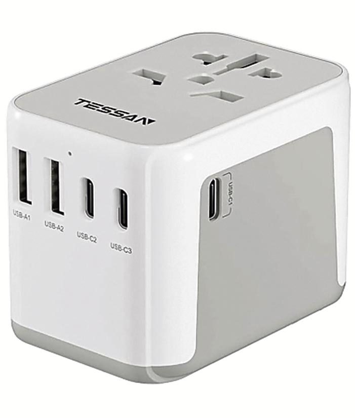 Un solo adaptador de enchufe para viajar a más de 224 países diferentes, con un puerto USB tipo A de 12 W y otro USB tipo C de 15 W y potencia de hasta 2500 W. Tiene un peso inferior a 170 gramos y un diseño compacto que evitará quitarnos espacio en la maleta.