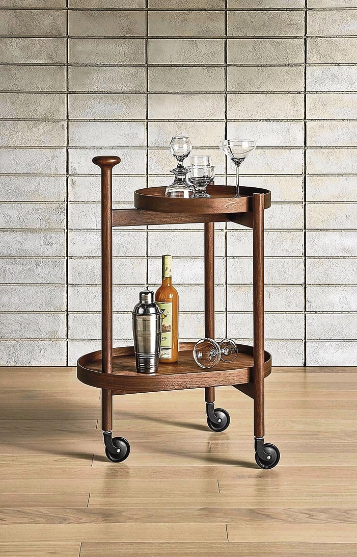 Saludemos con alegría al Por Favor Bar Cart, una versión moderna de la clásica camarera que encaja perfectamente con ese aire retro Mid Century que buscamos. Ni importa si eres del equipo gintonic con cosas, del infalible patxaran o si lo tuyo son los cocktails con hielo y sin alcohol; este elegante carrito está hecho para ser la estrella en cualquier reunión social. Su diseño asimétrico de tres patas y su perilla fácil de dirigir lo convierten en una pieza práctica y llamativa en la que no solo quedan bien las bebidas. www.bludot.com