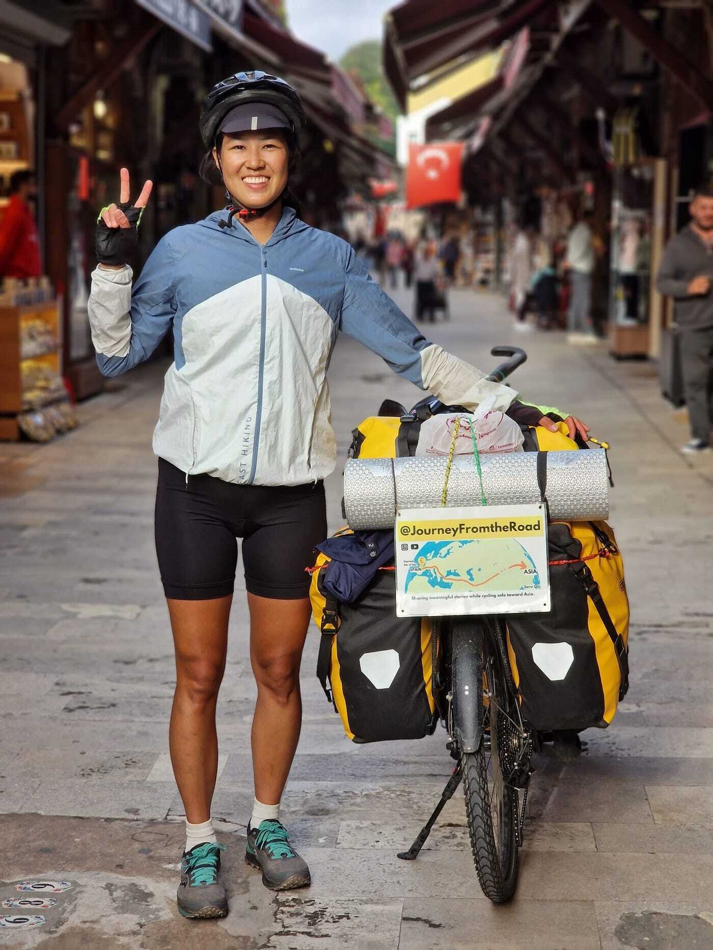 Jatorriz Txinakoa den aragoiarra da Sara Qiu. Zaragozatik Txinara joan da bizikletaz, aitona-amonen etxera. Proiektuari ‘Journey from the road’ deitu dio. Bidaian hegazkin bakarra hartu zuen, mapan jauzi egiteko Tbilisitik (Georgia) Aktaura (Kazakhstan). Bi urtean 16.200 kilometro egin ditu pedalei eragiten, hamabost herrialde bisitatuz. Sara Qiu Zhejiang probintziako Qingtian hiritik etorritako etorkin txinatarren alaba da.
