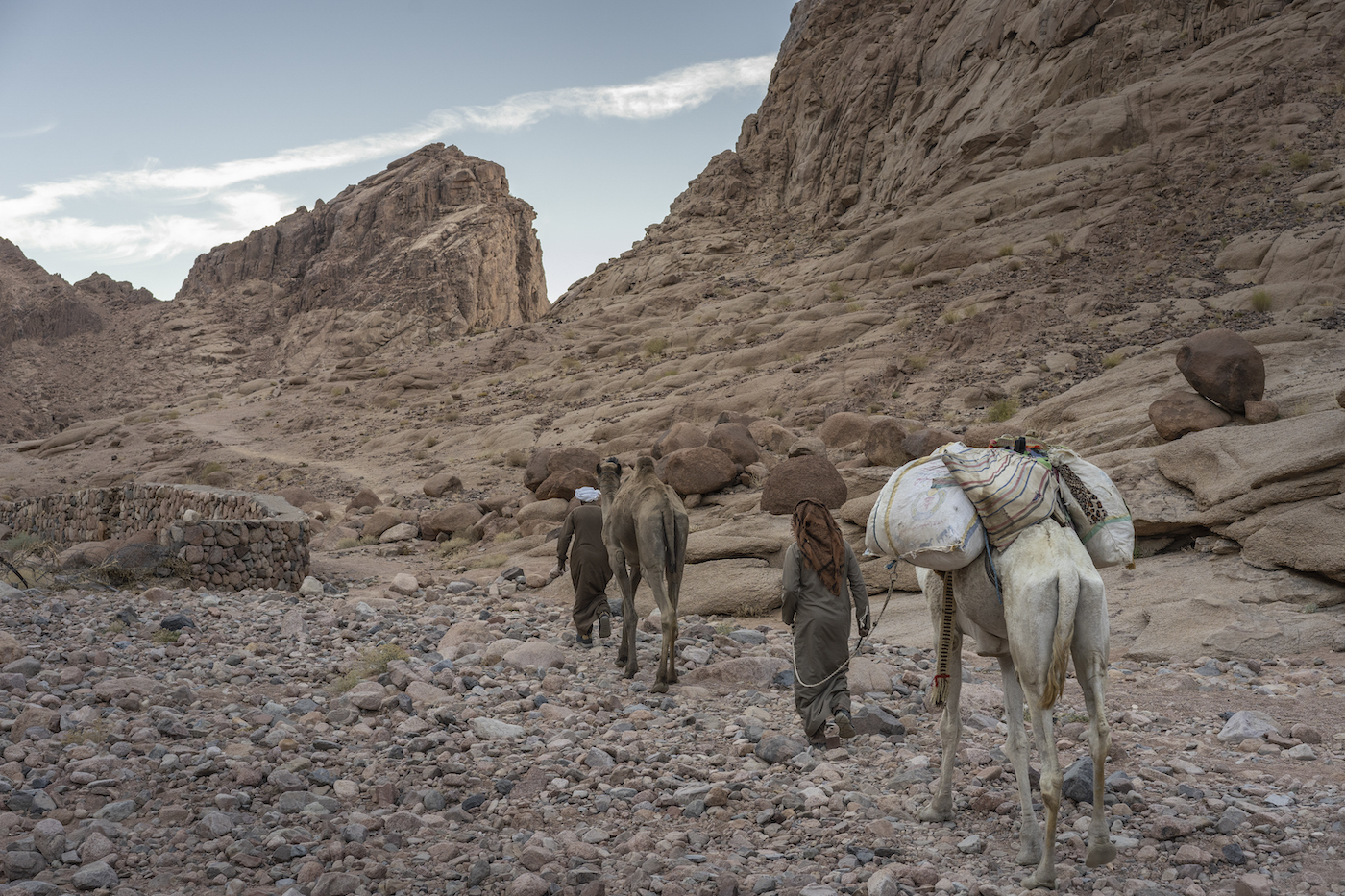 Gauez irten gara. Bidean gutxienez lau kafetegi daude, igoeran behar dena erosteko. Laugarrena nabarmena da, turistek utzitako dozenaka banderaz eta ehunka argazkiz apaindua. Handik gutxira, igoera zaildu egin da: 750 maila hautemanezinak iritsi dira. Beharbada, 500 metro inguru izango dira; bidearen zabalera estutu egin da, eta aldapa handitu. Gamelu gainean igotzen direnentzat azken geltokia dirudi toki harritsu honek.