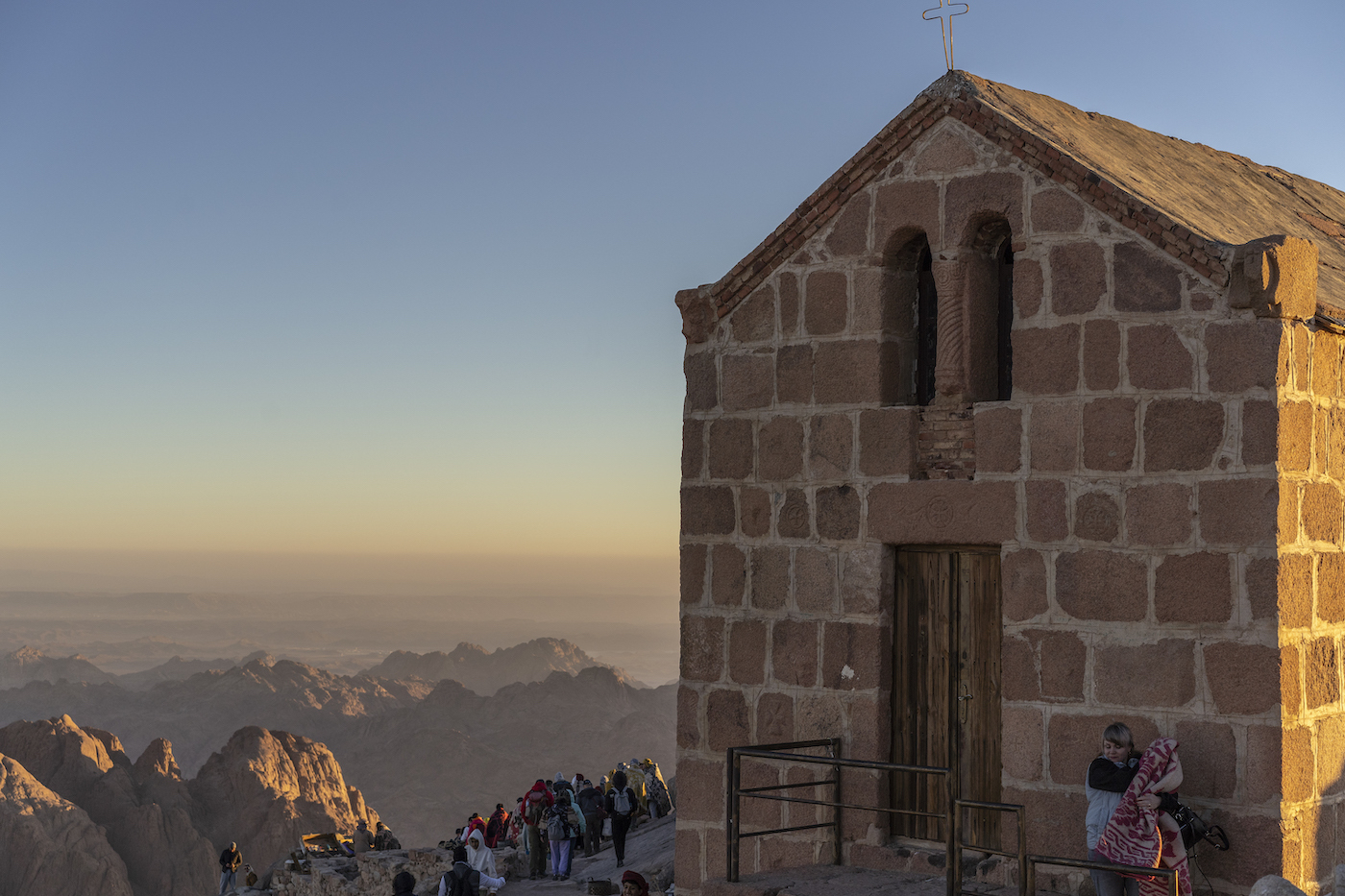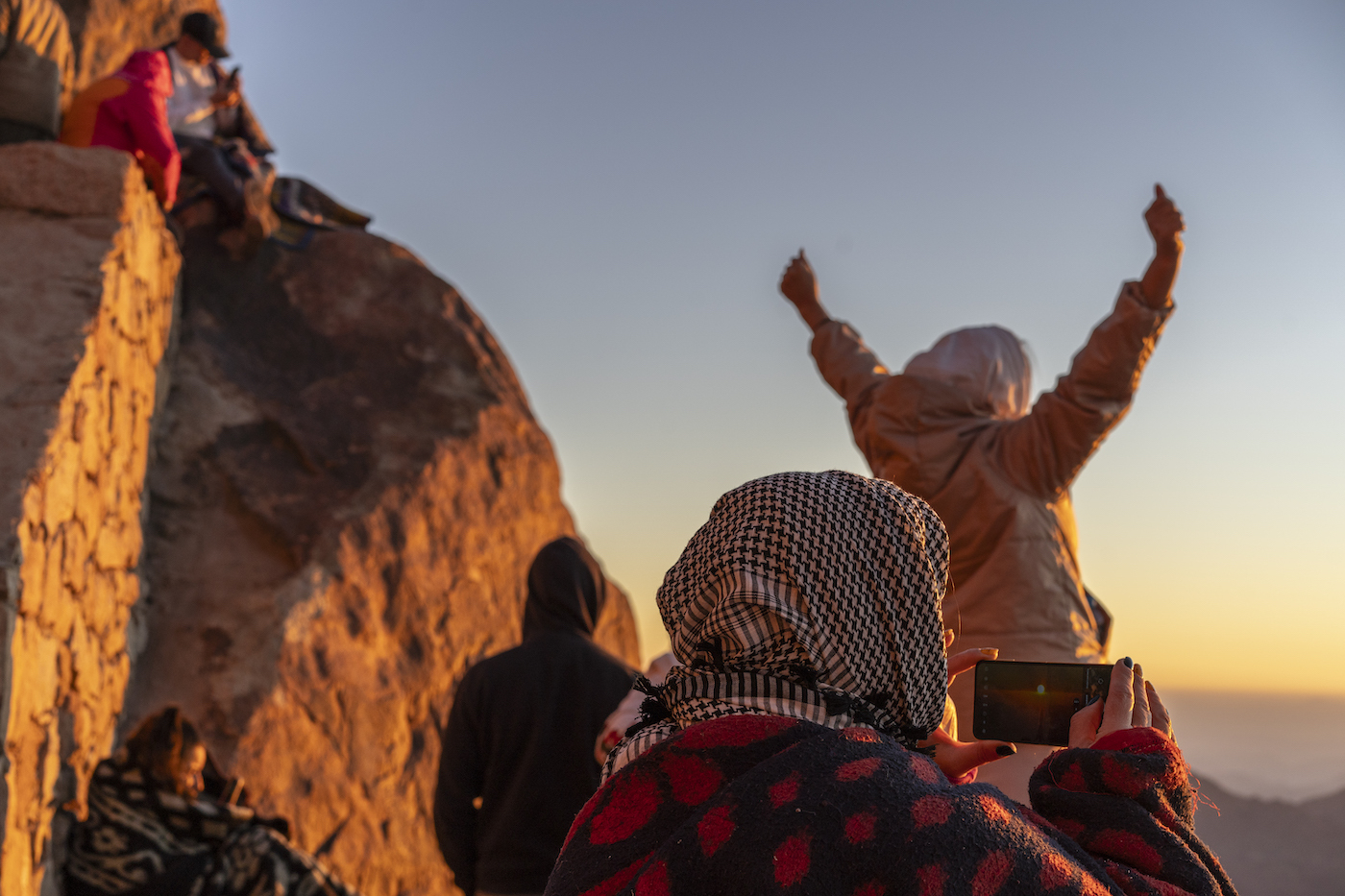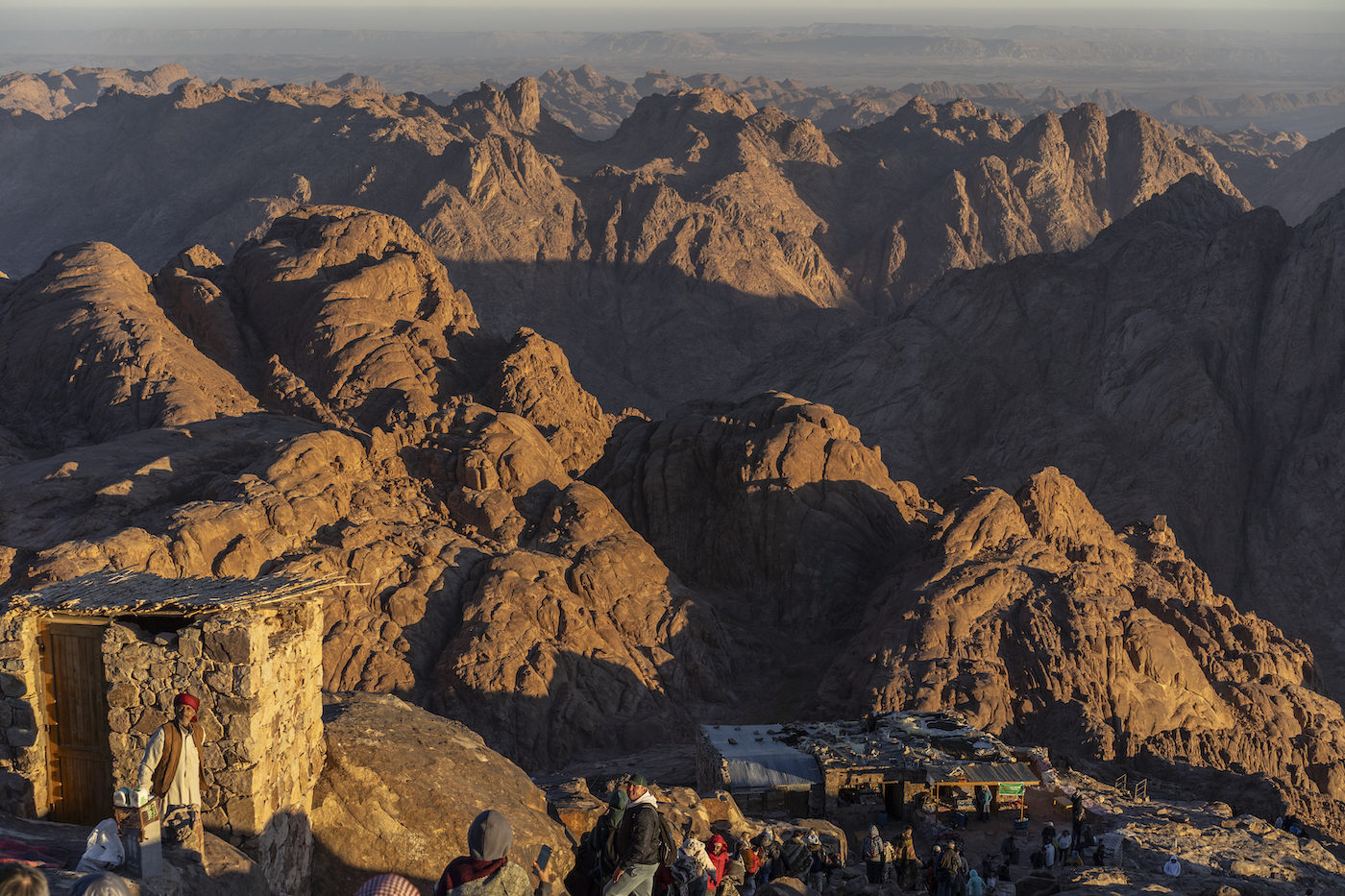Sinai mendiaren tontorrean, 2.285 metroko altueran, ibilbide osoan bezala, lasaitasuna da nagusi. Goizeko hirurak dira eta hotz dago; horregatik, beduinoek esterilak eta mantak alokatzen dituzte. Bi ordu geroago hautsi da lasaitasuna. 300 turista baino gehiagoko taldea dator egunsentia ikustera. Gutxi batzuek baino ez dituzte granitozko mendi gorrixka horiek arretaz begiratzen; gehienak selfie perfektua lortu nahian egoskortuta daude.