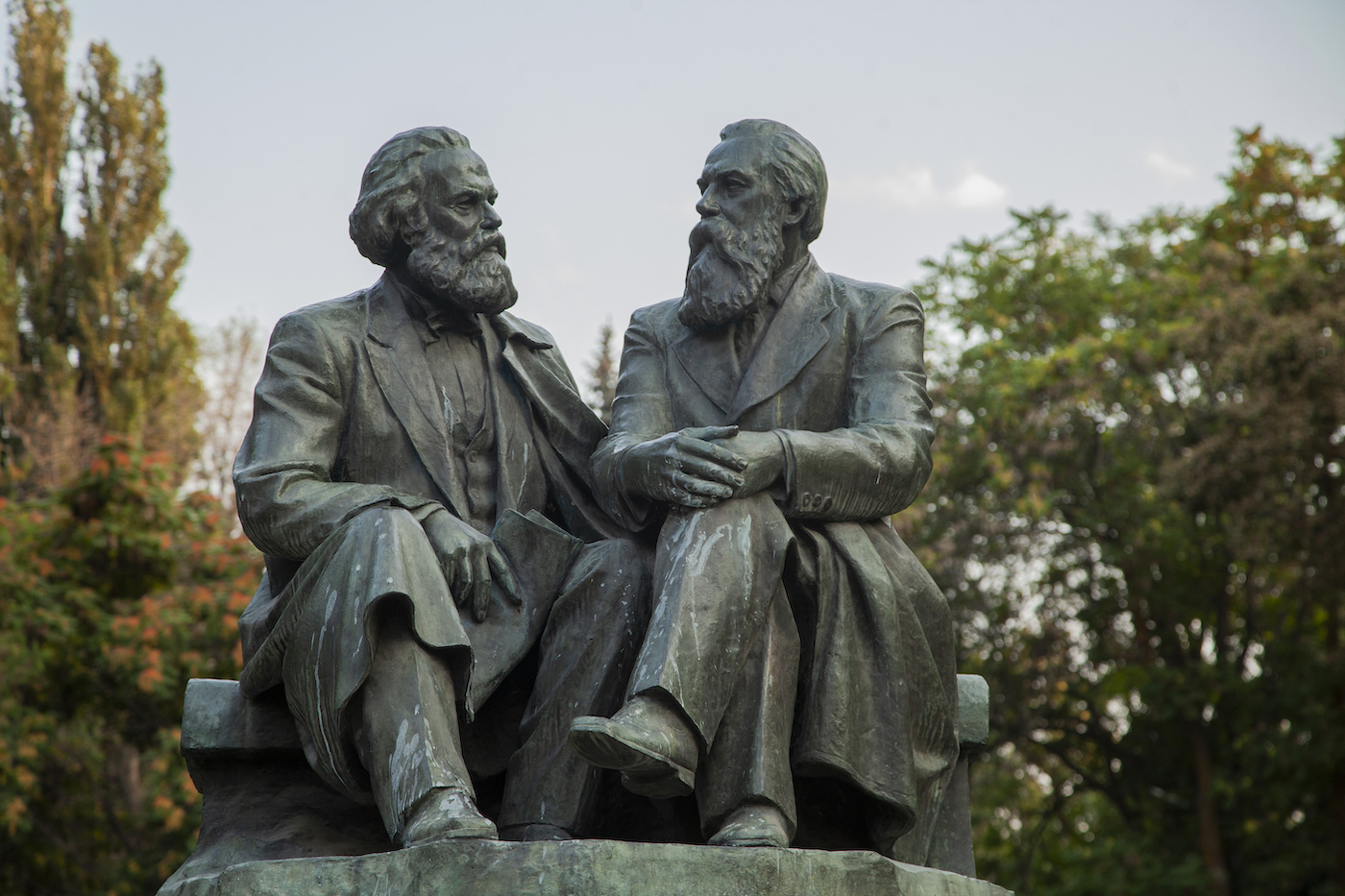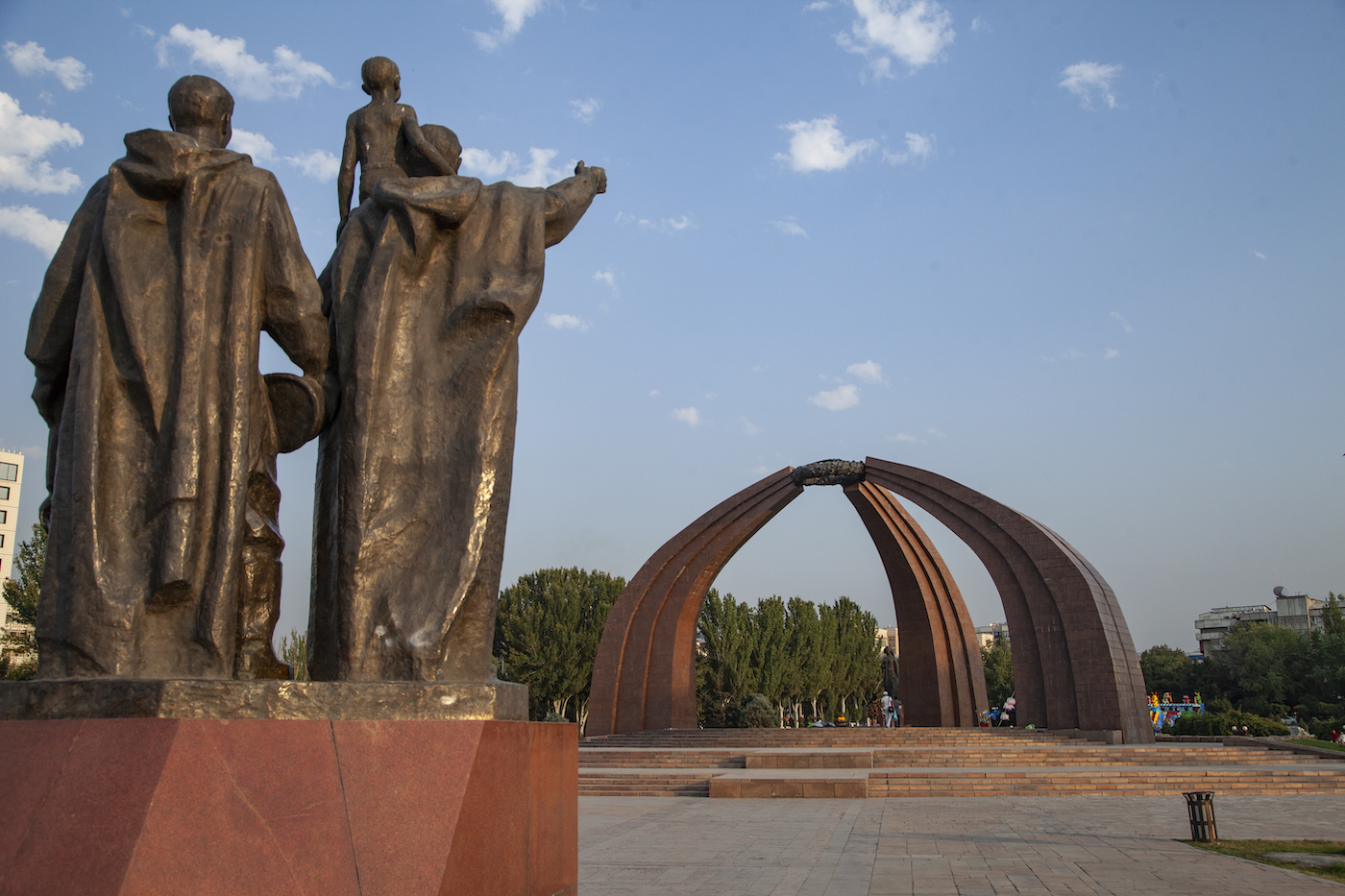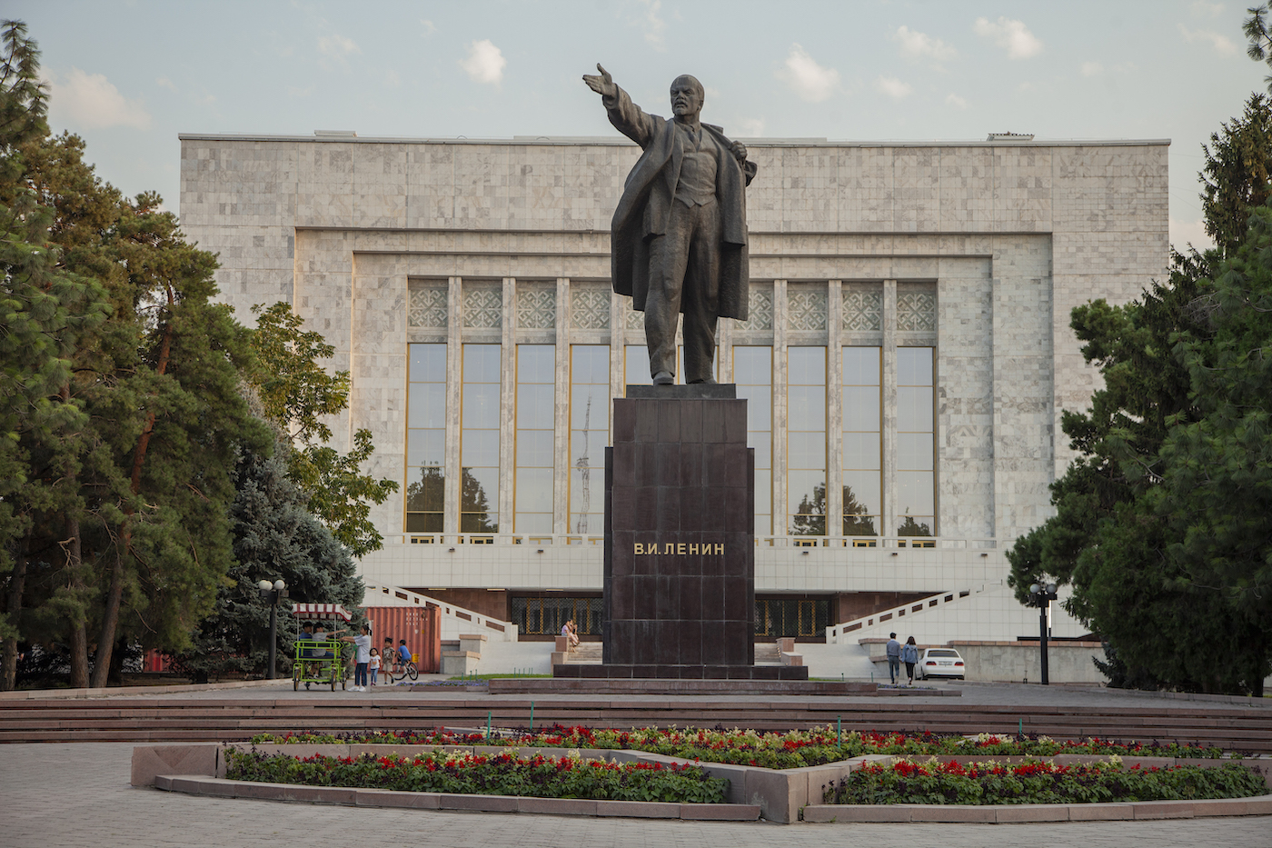 Herrialdeko hirietan ez da falta halako estatuarik, ez baitziren eraitsiak izan. Kirgizistanek ez dio inoiz uko egin iragan sobietarrari. Izan ere, ondoan dagoen Oak parkean, gobernuaren eraikin neoklasikoen aurrean, Marx eta Engels eserita daude, solasaldi lasaian.