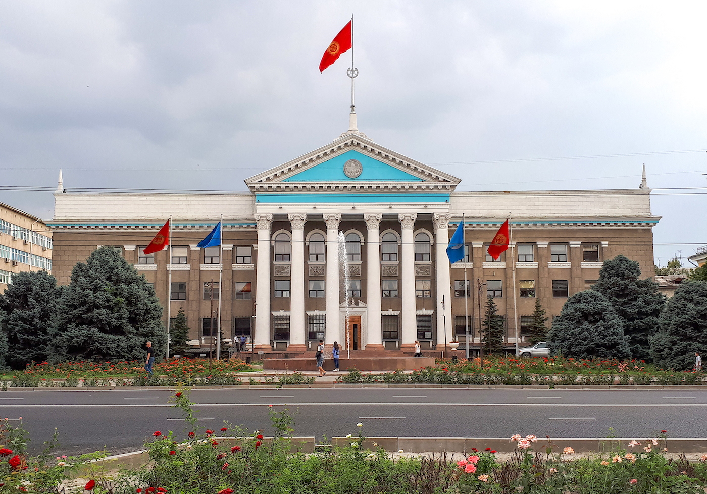 Etxe Zuria, Kirgizistango parlamentua eta presidentearen egoitza, estilo estalinistakoa. (Xabier BAÑUELOS)