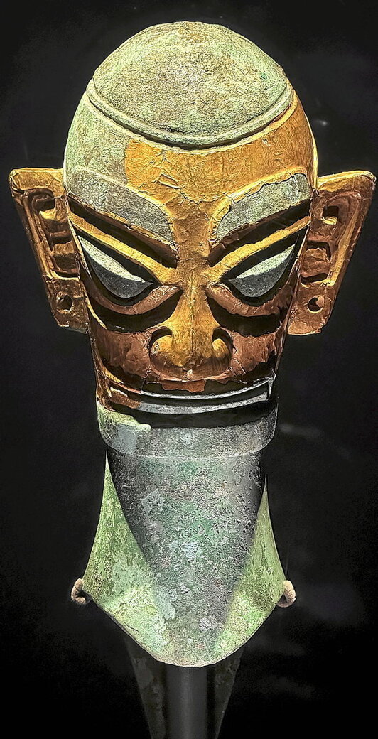 Sanxingduiko Museoan ikusgai dagoen brontzezko maskara da. Guanghanen dago, Txinan. Sanxingduiko aztarnategi arkeologikoan aurkitutako Shu zibilizazio zaharraren piezak erakusten ditu museoak. Adituek diotenez, antzinako Shu zibilizazioaren estilo artistiko bereizgarriaren eta metalurgia-teknika aurreratuen adibide da maskara.