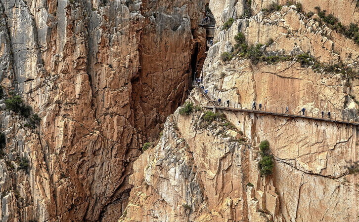 Gaitanes haitzartean gabiltza, pasabide ikaragarri batean barrena, nolabait paisaia irensten duten malda bertikalen eta hersturen artetik. Caminito del Rey bertigoari desafio egitea da eta bide sinesgaitzen estetikaz gozatzea.