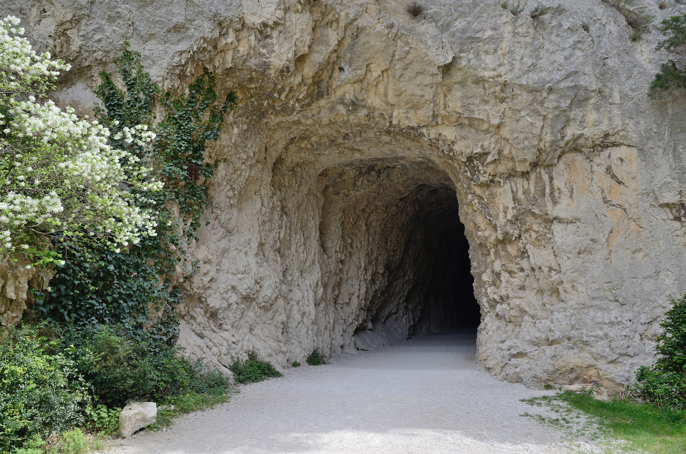 Bide berdeko seinaleei jarraitzen dienak bidezidorretik aurrera egingo du, ibaiaren ondotik, eta bitan zeharkatuko du kareharrizko arroka gorrixka, bi tunel igarota –206 eta 160 metro luze direnak–. Ez da komeni tuneletan linterna gabe barneratzea, barruan ez baitago argi naturalik.