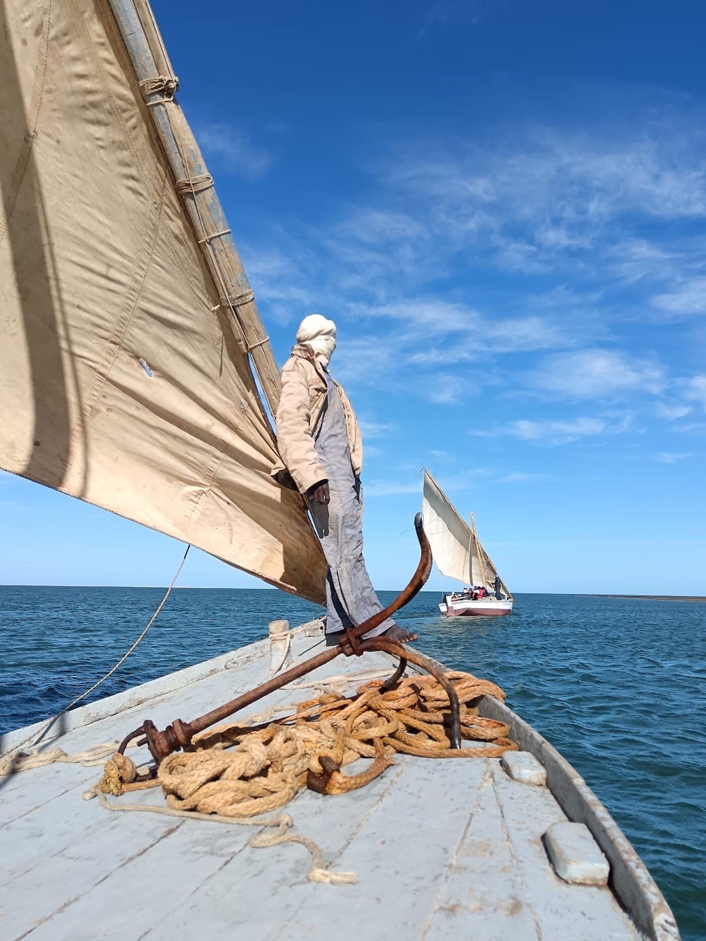 Ilunabarra gorriz tindatu da eta gaueko zeru beltzean milaka eta milaka dirdira agertzen hasi dira. Biharamunean, goizaren lehenengo orduetan bertako Imraguenen belaontzietara igo gara kostaren ertzetik nabigatzeko. Hegaztiei so, haizearen fereka aurpegietan, gure patroi eta marinelen irribarre txuriek ongietorri beroa egin digute. Itsasbehera aprobetxatu dugu, ondoren kostaldeko hondartza gainetatik gidatzeko, Arguineko parke nazionala iparretik hegora zeharkatu, eta handik Nuakchottera. Oraindik tartea dugu arrain merkatura iristeko. Eta hau ere ez da bisitaldi makala, ez horixe. Hondartzatik bertatik irten eta sartzen dira arrantzaleak, gehienak senegaldarrak, haien txalupa luze bezain koloretsuetan. Kanariar uharteetara edo Andaluziako kostaldera hilero heltzen diren cayuco delakoak.
