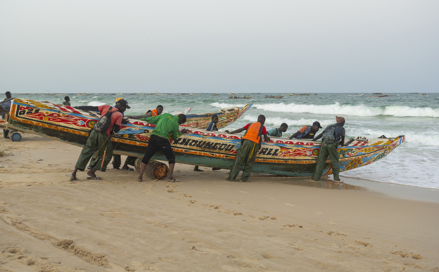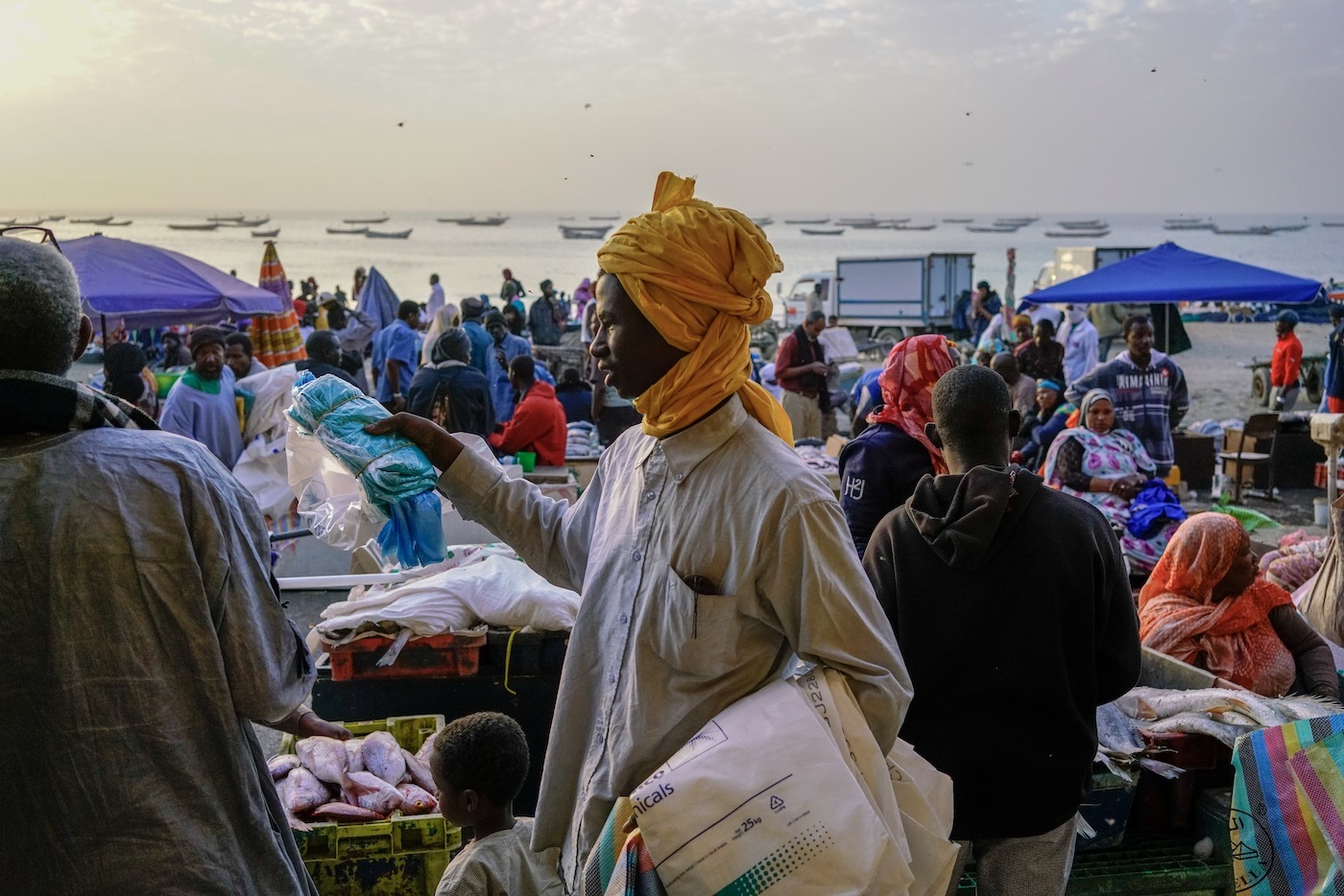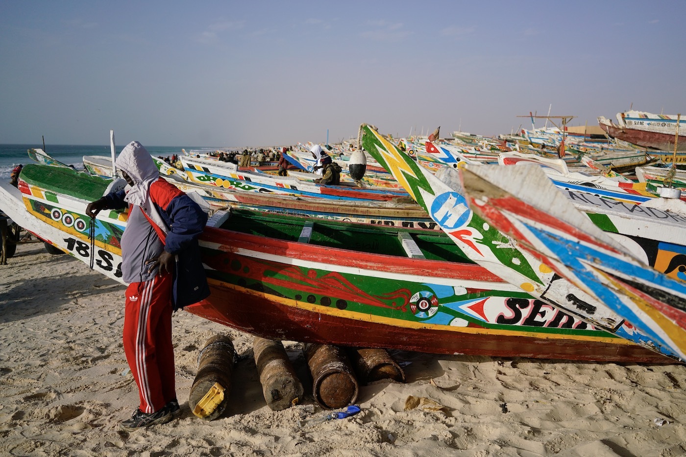 Berehala hasiko dira bart gauez harrapatutako arrain guztiak deskargatzen. Zelako bizitza ikusten ari garen!: plastikozko poltsak saltzen dituzten nerabeak, merkatuko postu finkoetan dauden arrain garbitzaile eta saltzaileak, zaldi gainean hondartza luzean ezker-eskuinera dabilen gazte harroa, ferietako eskopetekin tiro egitea eskaintzen dizuten beste bi gizon heldu, Mauritaniako Armadako soldadu pare bat... Eta, nola ez, hondarraren gainean ehunka eta ehunka cayuco, bakoitza kolore biziz pintatua, Allah-ren edota Amadou eta antzeko izen musulmanen ondoan Barça futbol taldearen ikurrarekin apainduta.