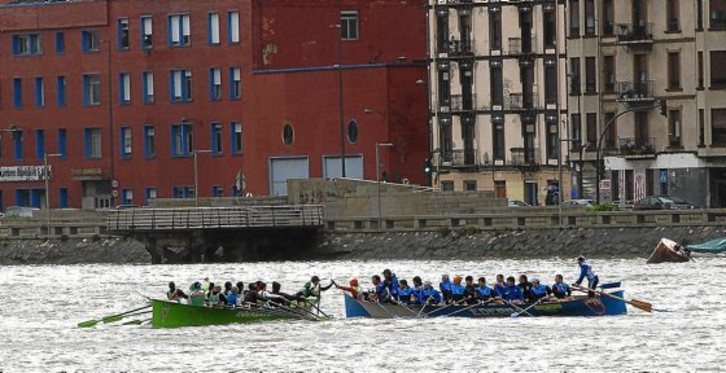 El mensaje llegó a Erandio y, remando por la ría, a Barakaldo. Allí estuvieron las representantes del centro asesor de la mujer Argitan para recibirlo entre saltos y ánimos y pasarlo a otros agentes de Ezkerraldea, una comarca donde se está recuperando el euskara poco a poco, entre otras cosas, gracias a las 500 personas que participan en las dinámicas de Berbalagun.