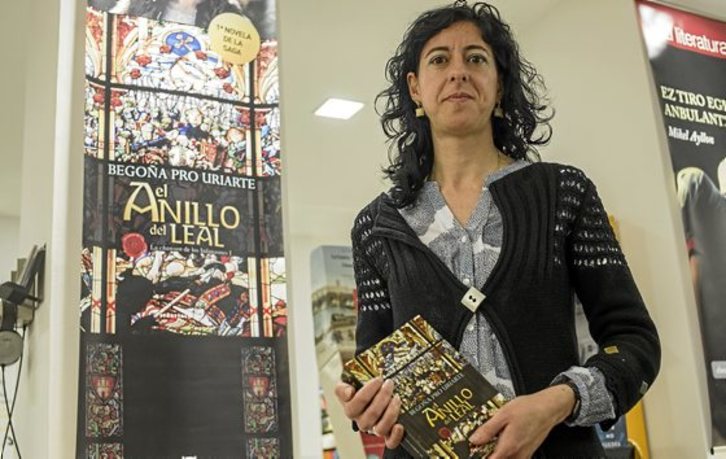 “El anillo del leal” es el primer volumen de la saga de caballerías “La chanson de los Infanzones” que ha sido editada ahora por la editorial Ttarttalo. El mismo libro, no obstante, tuvo un recorrido inicial bien diferente. Escrita en 2012, su autora, Begoña Pro Uriarte, se decantó por la autoedición, a la vista de las dificultades por publicarla en una editorial. «El mercado se encontraba cerrado a consecuencia de la crisis y era muy difícil encontrar un hueco en las editoriales», explicaba ayer la escritora iruindarra. Así que decidió «iniciar la aventura» y tirarse «al vacío». Una tirada de 200 ejemplares y una segunda de la misma cuantía. «Los vendí todos, la mayoría entre conocidos y por el boca a boca», señaló. Hasta toparse a Ttarttalo en su camino. Edita ahora la primera parte de la saga, y en unos meses también se publicará la segunda. «Si tiene buena acogida entre los lectores se publicarán también los siguientes ejemplares», sentenció.
