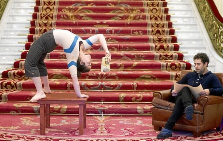 Dejabu Panpin Laborategia recibía ayer, Día Internacional del Teatro, el Donostia Antzerki Saria por su obra “Arrastoak”, mientras en Bilbo, en el Arriaga, se realizó una lectura dramatizada del manifiesto internacional. Jon URBE/Marisol RAMIREZ | ARGAZKI PRESS