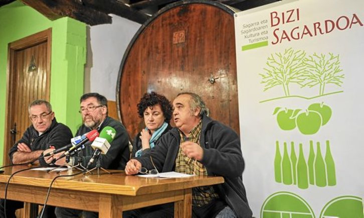 Hala nabarmendu zuten atzo Euskal Herriko sagardogile elkarteek, eta txotx denboraldia maiatzaren amaiera arte luzatuko dela gogorarazi zuten Arantxa Eguzkitzak (Gipuzkoako elkartekoa), Jose Antonio Zamalloak (Bizkaia), Juanjo Peciñak (Araba) eta Jesus Angel Garciak (Nafarroa). Ekoizle gehienek, gainera, urte osoan zabalik izango dituzte upategiak, sagardoa botilan eskainiz.