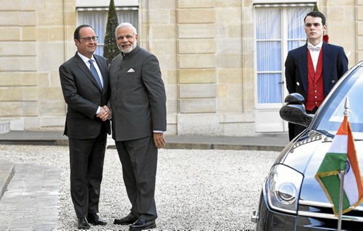 Narendra Modik atzo eman zion hasiera Europara egiten duen lehen bisita ofizialari. Indiako lehen ministroak Europako industria erakarri nahi du bere herrialdera, hori baita agintariek aipatu duten helburu nagusia. Aldi berean, frantses Estatuko Rafale izeneko gerra hegazkinak erosteko negoziazioekin jarraituko dute egunotan, Alemaniara joan aurretik, datorren igandean Hannover hirian munduko industria azokarik handienaren inaugurazioan esku hartuko baitu.