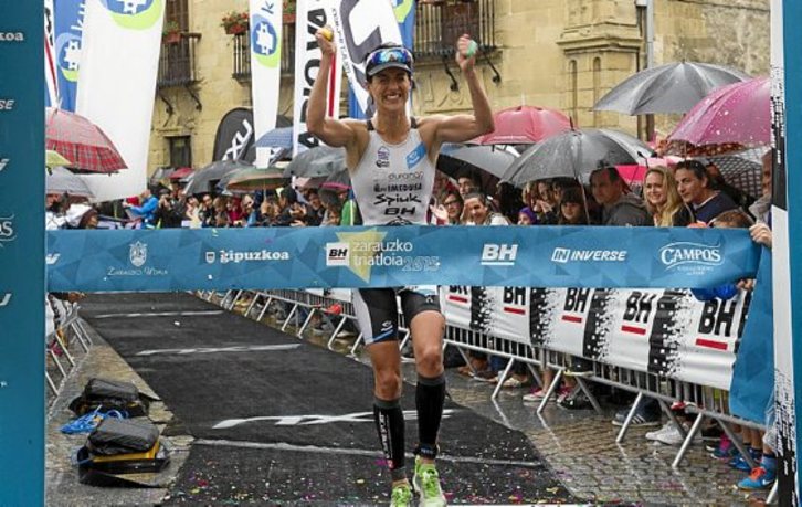 La atleta de Iurreta, que se recompuso en la carrera ciclista tras perder un valioso tiempo nadando, y Peru Alfaro se proclamaron campeones de Euskadi.