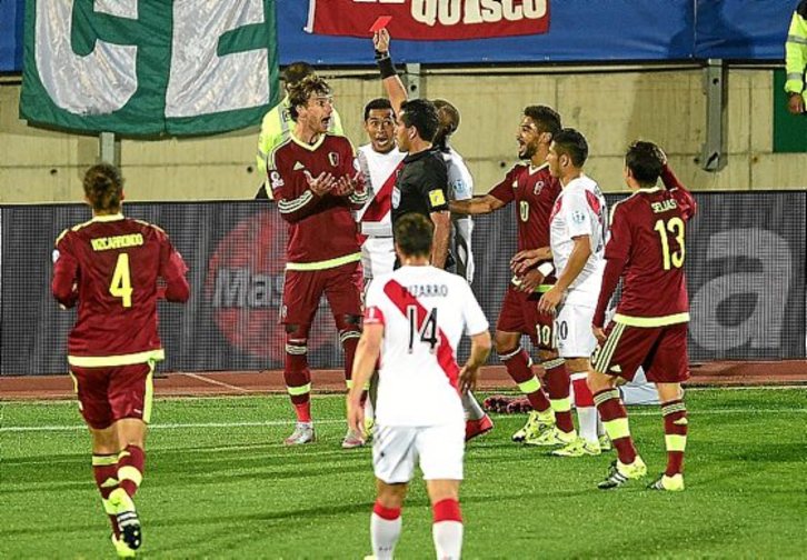 El encuentro estuvo influido en gran parte por la expulsión de Fernando Amorebieta a la media hora de juego tras propinarle un pisotón a un rival. Pese a ello, Venezuela aguantó el tipo e incluso le jugó de tú a tú a su adversario durante gran parte del envite. Sin embargo, un gol de Claudio Pizarro en el 72 inclinó definitivamente la balanza del lado peruano.