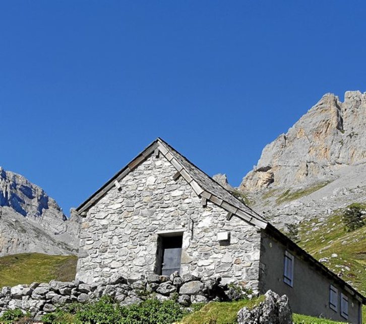 La senda nos llevara ahora por las suaves laderas herbosas que alfombran el fondo del circo hasta alcanzar entre roquedos caídos de las murallas que forman este recoleto circo, donde encontraremos la cabaña de Cap de la Baitch, un edificio de doble estructura con techumbre de tablillas de madera (oholak), donde los días festivos los pastores ofrecen la venta de queso. Fuente de generoso caño El Paso d’Azun se encuentra a nuestra derecha, entre la cumbre de Soumcouy y el Torreón de Les Toureilles, de aspecto inexpugnable. Desde la cabaña, dejaremos a la izquierda la senda que sube al collado de Anies, paso a las cumbres de Auñamendi y La Contende.
