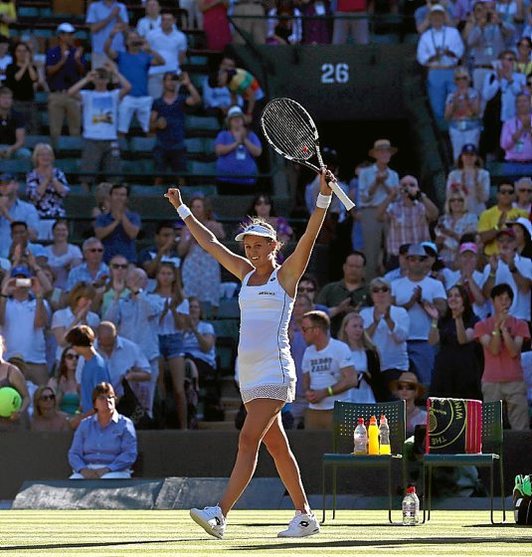 La guipuzcoana, tras cuajar un gran partido, se enfrentará en segunda ronda a la italiana Camila Giorgi, que ganó ayer a la brasileña Teliana Pereira. En el cuadro femenino se produjo la eliminación de Simona Halep, 3ª y semifinalista en 2014. La eslovaca Cepelova, 106ª, le ganó por 5-7, 6-4, 6-3. Antes dijo adiós Eugenie Bouchard, 12ª y finalista el pasado año. La quebequesa cayó ante la china Ying-Ying Duan, 117ª, por 7-6 (7/3), 6-4, incapaz de cortar una racha que desde marzo le ha impedido encadenar dos triunfos seguidos incluido Roland Garros donde se despidió en su debut.