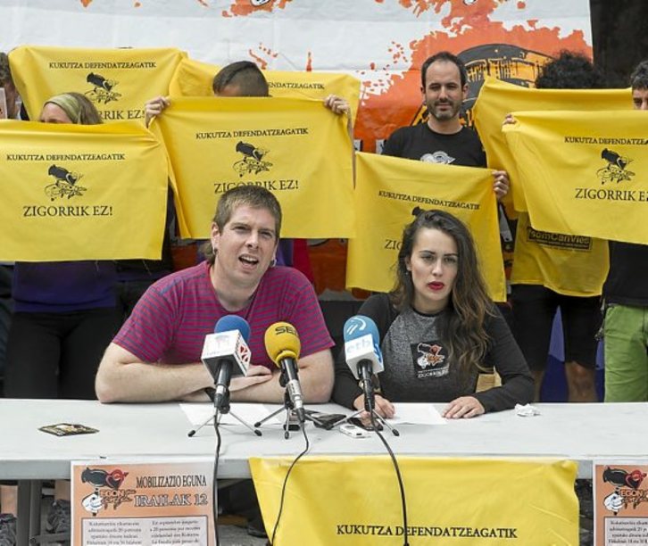 Una veintena de personas presentaron ayer al mediodía en la plaza de Errekalde, en Bilbo, la campaña de denuncia que va a impulsar Kukutzaren Elkartasun Taldea contra un nuevo juicio que va a tener lugar el 14 y 16 de setiembre contra 19 solidarios con Kukutza. «Ante la voluntad criminalizadora y la intención de quienes nos qui- taron Kukutza de atacar a nuestros amigos, debemos responder con una ola de solidaridad», defendieron.