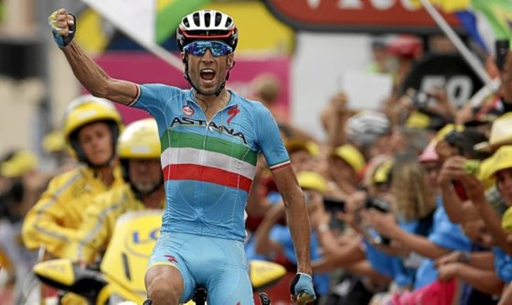 El siciliano atacó a 60 kilómetros de meta y se coloca cuarto en la general. Nairo Quintana recortó medio minuto a Chris Froome.