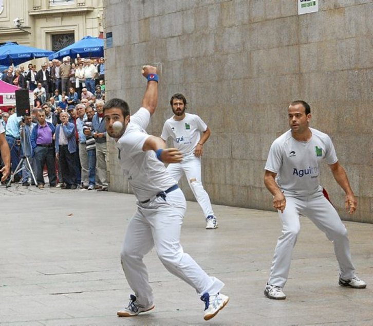 Joko berrin, gutxitan aritzen diren jokalekuan, gutxi baitaude Euskal Herrian, partida bikaina jokatu zuten herenegun iluntzean Arbonan, eta bertan, Intxauspek eta Bilbaok irabazi egin zuten 40 eta 36, Bielleren eta Ezkurraren aurka.