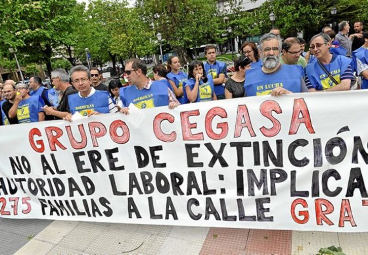 Varias decenas de trabajadores del Grupo Cegasa se concentraron ayer frente al Juzgado Mercantil de Gasteiz para solicitar al juez que no autorice el ERE de extinción de contratos que supondrá el despido de 275 empleados, 210 de la planta de la capital alavesa.