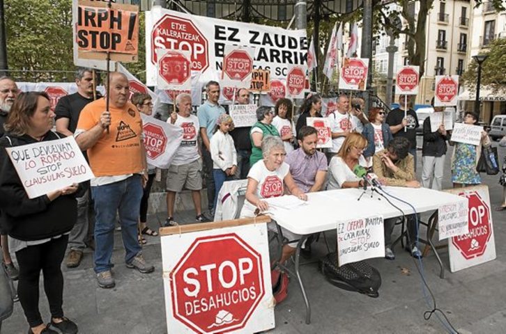 La cláusula suelo fue declarada nula por el Tribunal Supremo en sentencia de 9 de mayo de 2013, a la que han seguido «innumerables pronunciamientos» de juzgados y audiencias provinciales en el mismo sentido, explicaron ayer miembros de Stop Desahucios de Araba, Bizkaia y Gipuzkoa en Donostia.