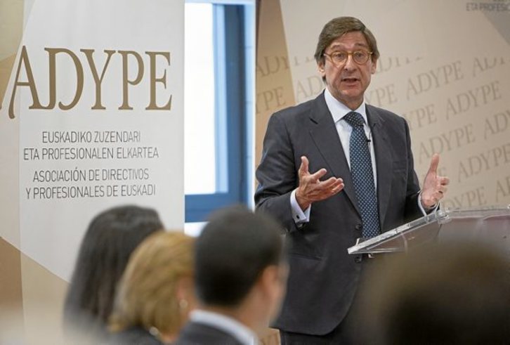 El presidente de Bankia, José Ignacio Goirigolzarri, participó ayer en Bilbo en un desayuno organizado por la Asociación de Directivos y Profesionales de Euskadi (ADYPE), donde ofreció la intervención “El sistema financiero ante la recuperación económica. La visión de Bankia”.