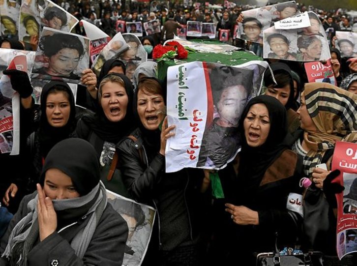Los manifestantes recorrieron 11 kilómetros de la capital afgana con los cuerpos de las víctimas a cuestas, entre ellas dos mujeres y una niña de 9 años, entre gritos de «muerte a los talibanes, muerte al Daesh (acrónimo del ISIS en árabe) y muerte al incompetente Gobierno».