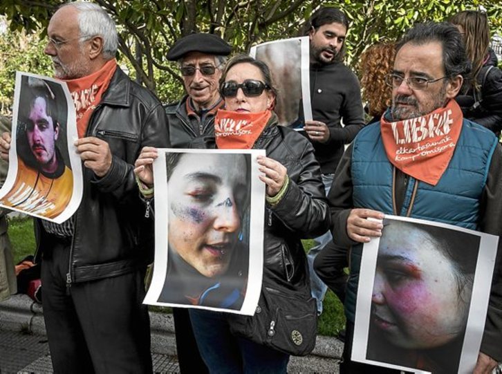 Ahora se ha abierto una nueva vía judicial contra 16 de las personas que participaron en el citado muro popular, a las que se acusa de «desordenes públicos» y «atentado a la autoridad». «Pero, como todas pudimos ver, aquel 18 de mayo los únicos que generaron desórdenes fueron los agentes de la Ertzaintza. Fueron los únicos que atentaron gravemente contra la integridad física de las personas», señalaron Oleaga y Martínez del Campo en una concentración convocada frente al Palacio de Justicia para apoyar a cuatro de los imputados. «Lo que hay que ver, imputadas por la Ertzaintza tras ser apaleados por sus agentes, por proteger con sus cuerpos a nuestros hijo e hijas, a estos ‘terroristas’ que ahora el Tribunal Supremo excarcela», añadieron antes de recordar que los informes de la mutua, remitidos al Parlamento, revelaron que la «forma de lesión» de 16 de los 18 ertzainas heridos en el desalojo de las personas congregadas aquel día en la Virgen Blanca se debió a un «sobreesfuerzo».