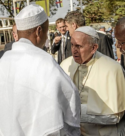Horas más tarde, también simbólicamente, dos pick-up llenos de musulmanes con camisetas con la imagen de Francisco llegaron al estadio de Bangui para asistir a su misa.