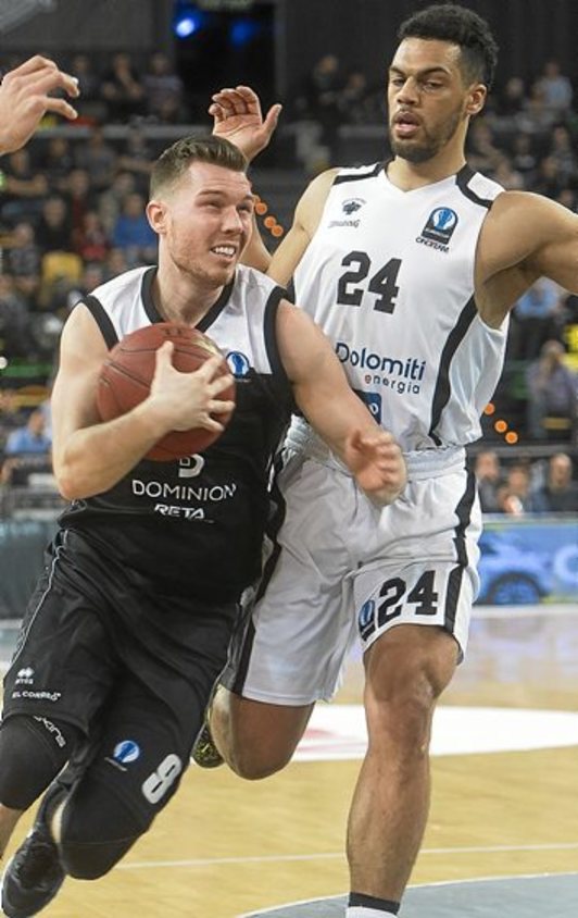 Ello dio a Clevin Hannah quizá más minutos de los que Sito Alonso hubiera deseado darle, pero lo cierto es que Hannah fue el referente anotador bilbaino de la segunda mitad. Gracias a sus 22 puntos y 8 asistencias, Dolomiti Trento, más activo y acertado, solo pudo arrimarse a la barrera de los diez puntos, pero sin que peligrara el triunfo de los hombres de negro.
