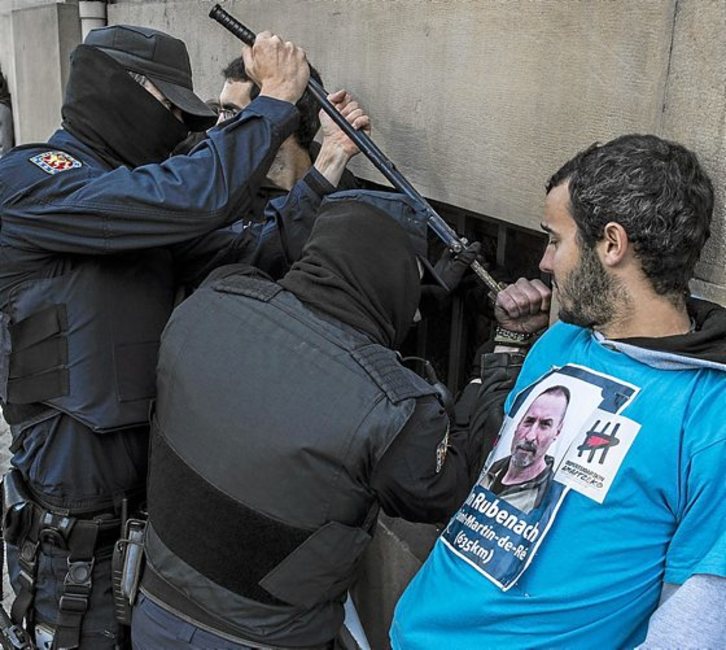 En Bilbo, la Ertzaintza se personó aproximadamente una hora después del encadenamiento y con las identificaciones, la acción se alargó hasta las 16.30. Tres jóvenes fueron llevados hasta la comisaría para corroborar los datos. Además de ello, se produjo una detención. Al parecer, uno de los solidarios arrebató una cámara a un policía de paisano que estaba tomando imágenes de la acción para, acto seguido, arrojar el aparato desde el puente a la ría.