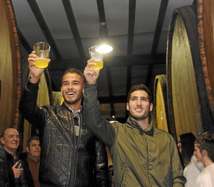 Bezperan Astigarragan Aritz Aranburu surflariarekin egin bezala, atzo Arabako txotxa zabaldu zuten Trebiñuko izen bereko sagardotegian. Luxuzko lagunak izan zituzten bertan ere lehenbiziko sagardoa dastatzeko, Alaves futbol taldeko kideak, hain zuzen ere.