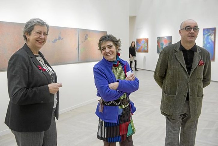 «Los artistas tenemos una suerte tremenda, no hay un momento aburrido en nuestra vida: aunque haya mucha gente en la cola de Correos, yo me siento en un rincón, me pongo a dibujar y se me pasa el tiempo volando; si tengo dolor de muelas, me pongo a pintar y se me olvida», aseguraba ayer Marta Cárdenas en la presentación de su exposición en solitario “Begiak irekita / Abre los ojos”, que se podrá ver en la sala Kubo-Kutxa hasta el 3 de abril. Con su peculiar manera de ver el mundo y la vida, la artista lleva a la sala donostiarra lienzos de grandes tamaños que muestran las diferentes etapas de su obra desde que iniciara su carrera en la década de los 60.