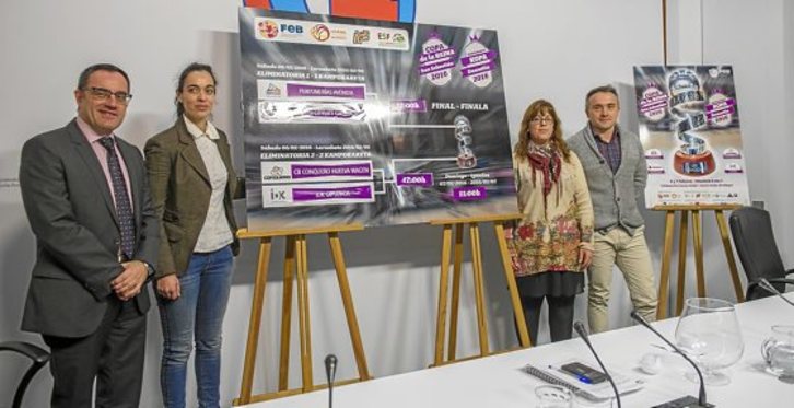 El presidente de la Federación Vasca, Arturo Aguado, el de la Guipuzcoana, Vanesa Asensio, y los representantes políticos ligados al deporte de la diputación, Goizane Álvarez y de Donostia, Martín Ibabe, fueron los encargados de realizar el sorteo. Subrayaron la importancia de acoger la Copa en Donostia, ubicando esta cita en el 75º aniversario de la Federación Guipuzcoana.